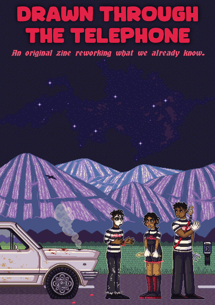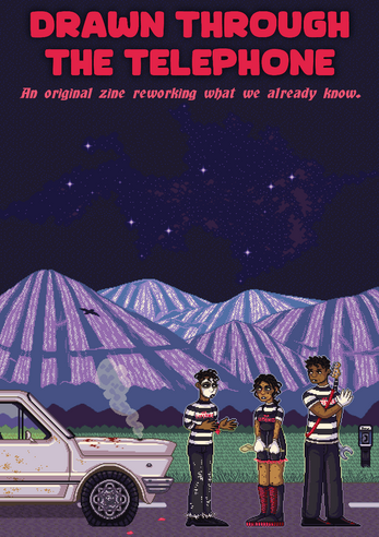 Each contributor to Drawn Through the Telephone was given a prompt as a base to create an original work. Each of those prompts was a vague description of an existing piece of media. Creators did not know what they were inspired by while they were working - can you guess the prompt's origin before it's revealed below the piece that grew out of it?